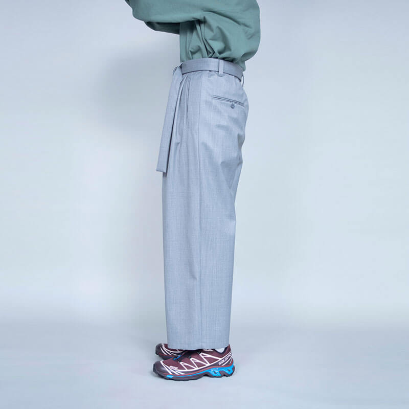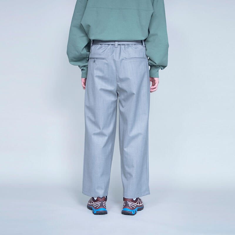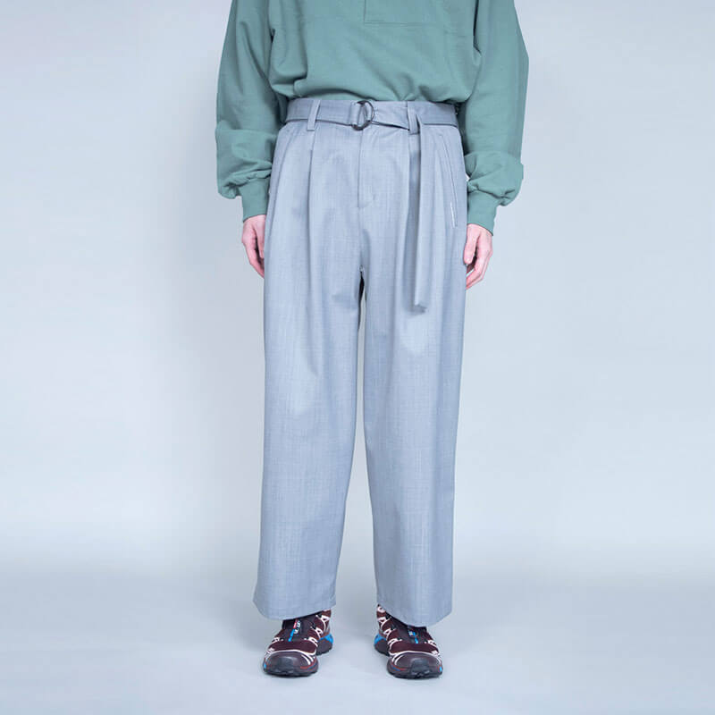 F/CE. Waterproof Tech Wool Wide Pants – Black: 3-layer waterproof wide pants. These functional pants have a wool-like appearance, yet are waterproof. The silhouette is made to be loose-fitting. The waist can be adjusted with a co-woven belt. F/CE.’s classic, functional and luxurious wide pants that can be used in all seasons.
