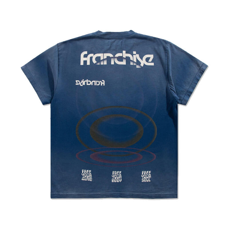 FRANCHISE Free Your Mind Tee – Washed Blue: Short sleeve tee with graphic printed on front & back from Franchise SS22 collection. This Free Your Mind Tee features:
