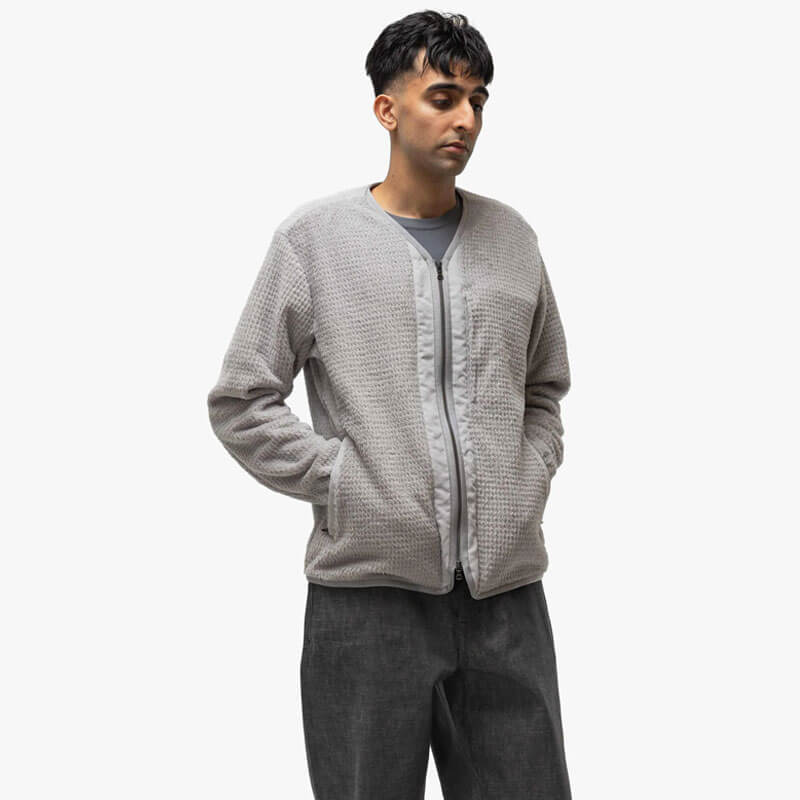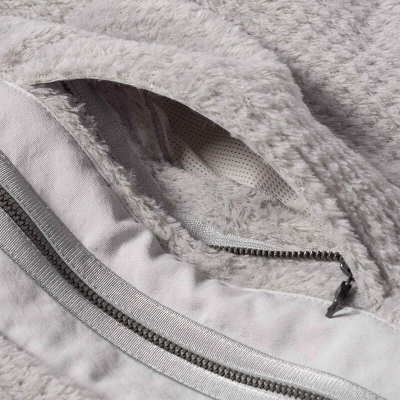 HAVEN Ridge Liner – Stone: Engineered for versatile layering, the Ridge Liner offers warmth, comfort, and adaptive breathability in a relaxed, oversized fit. Crafted from Polartec® Alpha® Direct—originally developed for U.S. Special Forces—it delivers dynamic temperature regulation while remaining lightweight and breathable. Hydrophobic fibers with a mesh core enhance durability and water resistance. Functional details include a dual YKK METALUXE® front zipper, chest pocket, and two zippered hand pockets, with elasticated cuffs, hem, and neck to lock out cold.