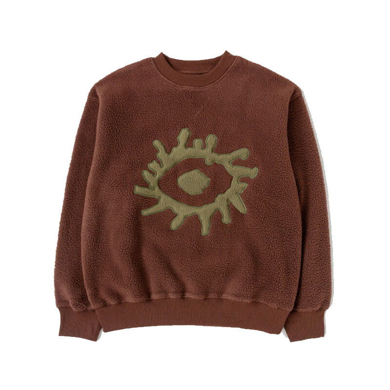 HERESY Spore Sweat – Ale: Crew sweatshirt in sherpa fleece, featuring ‘Spore’ applique logo on the front and matching rib.