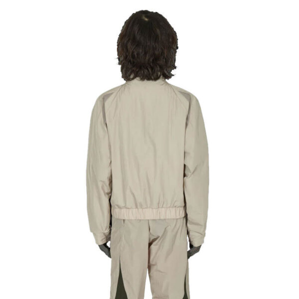 _J.L-A.L_ Minno Jacket – Chalk Grey: The Minno jacket draw inspiration from archery tracksuits and is rendered in nylon blends with ribbed inserts. The sharp lines wrap around the body in a seasonal iteration of a _J.L-A.L_ staple.