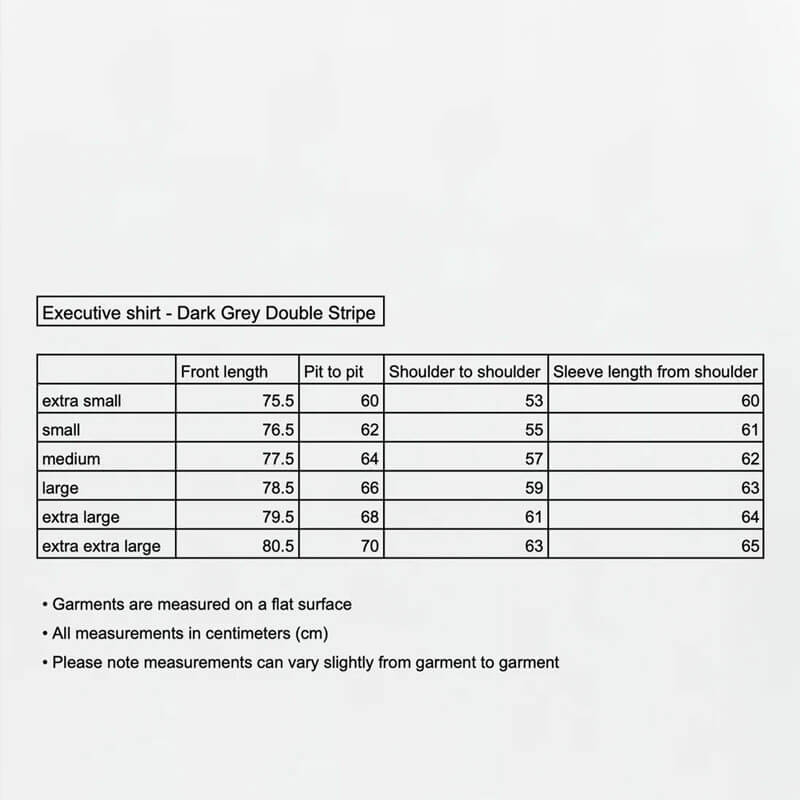 Included in the last Fall25 collection, the MFPEN Executive Shirt – Dark Grey Double Stripe are equipped with:
