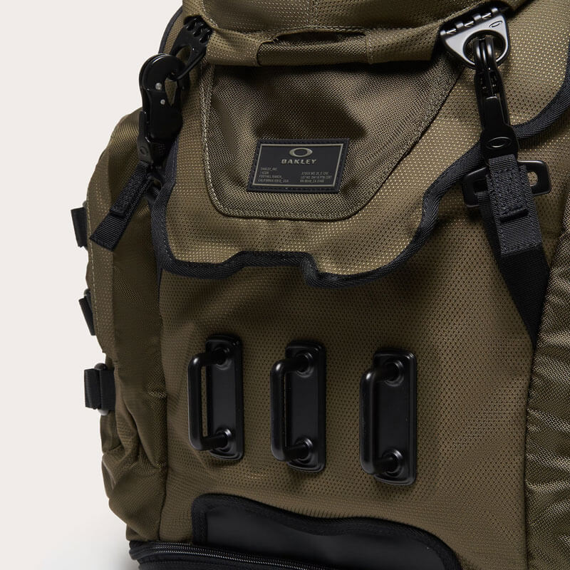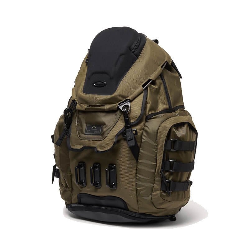OAKLEY Kitchen Sink – Army Green: Outfitted with serious hardware and versatile storage options, the Kitchen Sink Backpack is a complete package with heavyβduty appeal. Whether taking a day trip or extended excursion, specialized pockets inside and out organize items while abrasionβresistant fabric keeps them safe, including shoes and most 17″ laptops. A padded back and adjustable meshβlined shoulder straps keep you comfortable and cool when hauling over long distances. Equipped with a hard mediaβplayer compartment and reinforced clip and zip closures, the Kitchen Sink Backpack blends toughness, style and diverse function ideal for the unpredictable day.