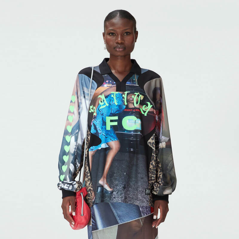 Included in the last Fall24 delivery, this P.A.M. (Perks & Mini) Sativa FC (Martine Syms) Jersey – Collage features: