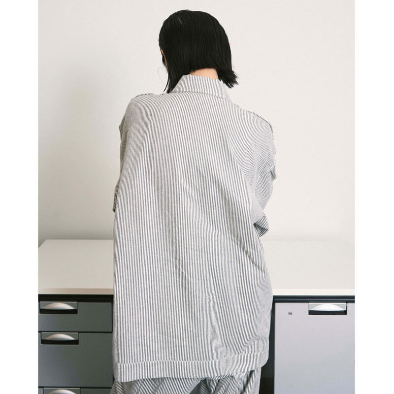 Included in the first delivery of Japanese brand at THEROOM, this PHINGERIN Hand-Stenciled Night Shirt Stripe – Off White features: