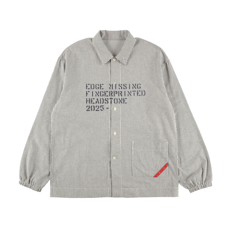 PHINGERIN Hand-Stenciled Night Shirt Stripe – Off White: PHINGERIN Classic Night Shirt, with the red stroke still in place. Renewed pocket shape, glow in the dark heart button, and still super comfy. Hand-spray painted by artist Ryusuke Marume.