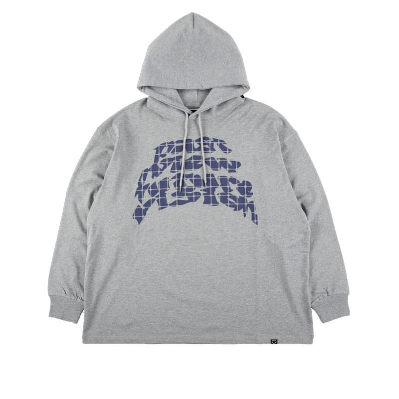 PHINGERIN PVFV Tee Layer Hoodie – Grey: This original hooded tee is designed to be layered over your favorite T-shirt, even in cold weather. Made with jersey fabric for the body and sweatshirt material for the sleeves and hood, it allows you to layer a T-shirt or vest without looking bulky. The hood, which tends to crumple with jersey fabric, stands up nicely. The “Past Future” message graphic is printed in Ryuhei Marume’s original font design, making it a perfect match for open-front jackets and web-based parka knits.