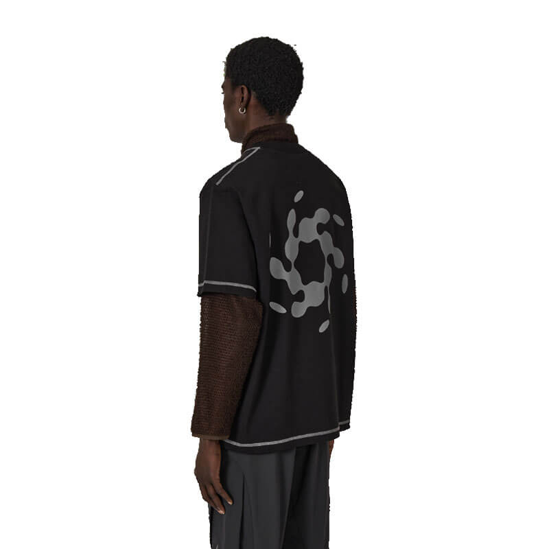 ROA Hiking Info Stitch Organic T Shirt – Black: Graphic t-shirt made of heavy-weight cotton jersey, black color. Boxy and comfortable fit. Printed contrasting logo on the front, and printed design on the back in silver and pewter color. Ribbed collar.