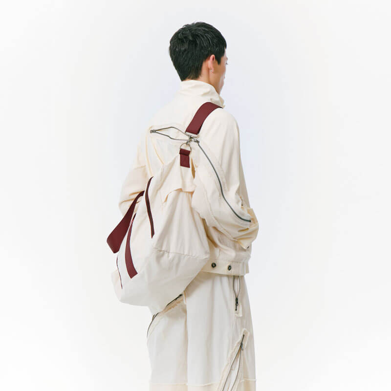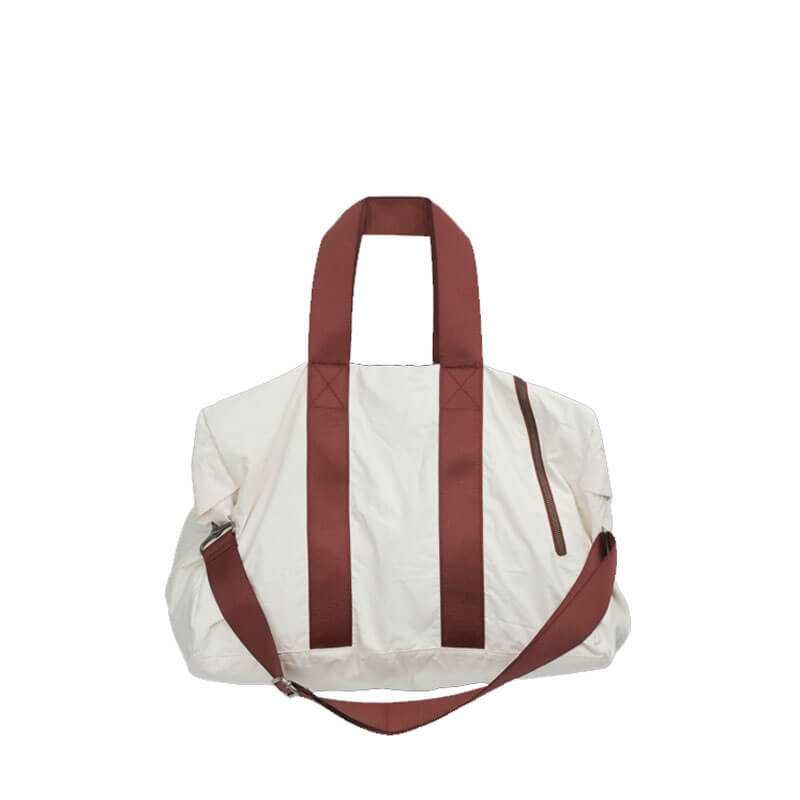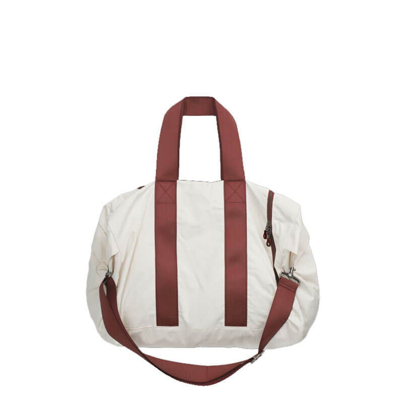 SAN SAN GEAR Duffle Bag – Ivory: Duffle bag with asymmetric zippered and handle & shoulder strap in contrast color.