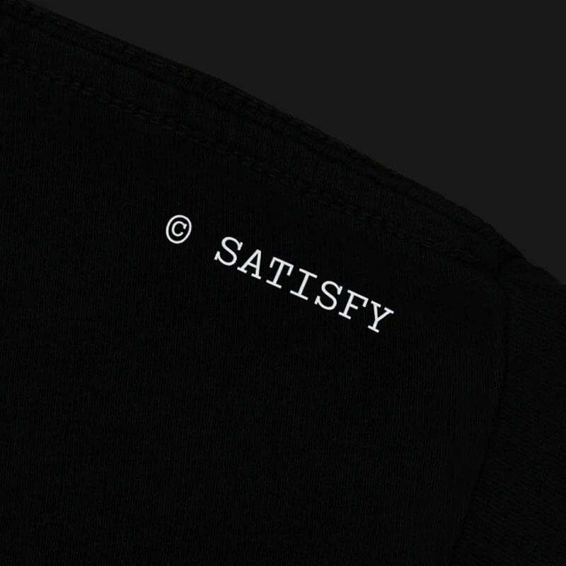 SATISFY® MothTech™ T-Shirt – Aged Black Logo: When distance builds, effort shows. Heat escapes and the mind follows.114 grams of organic cotton, aged and ventilated for exploration without distraction. It’s OK to run in cotton.