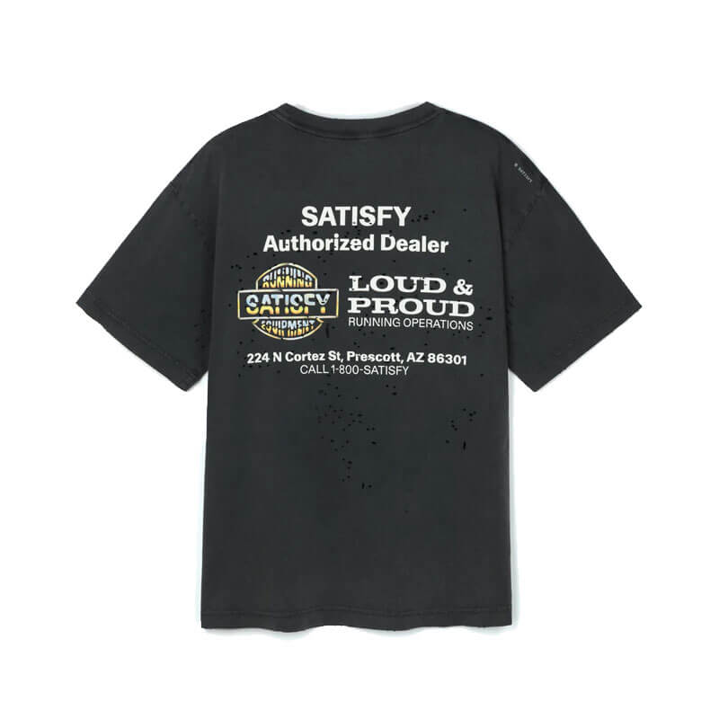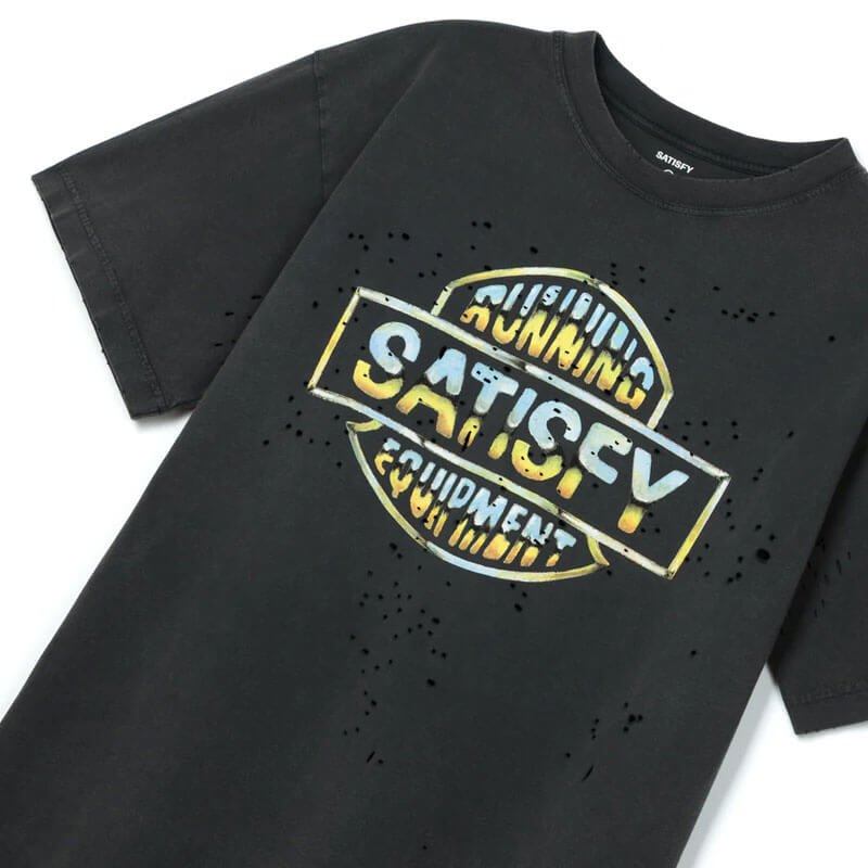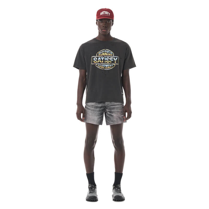 SATISFY® MothTech™ T-Shirt – Aged Black Loud & Proud: When distance builds, effort shows. Heat escapes and the mind follows. 175 grams of organic cotton, aged and ventilated for exploration without distraction. It’s OK to run in cotton.