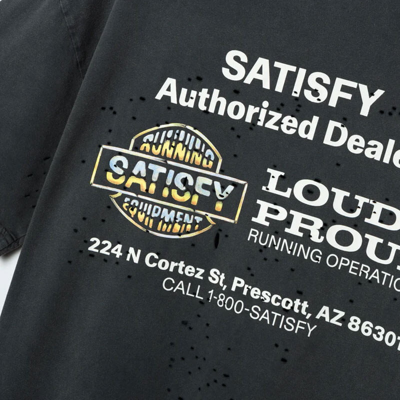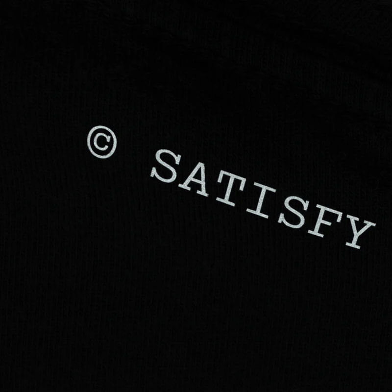 - Stamped with the SATISFY Running Equipment crest. Loud & Proud from front to back