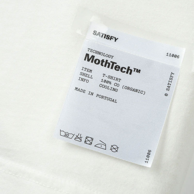 SATISFY® MothTech™ T-Shirt – Off White Spirit: When distance builds, effort shows. Heat escapes and the mind follows. 175 grams of organic cotton, aged and ventilated for exploration without distraction. It’s OK to run in cotton.