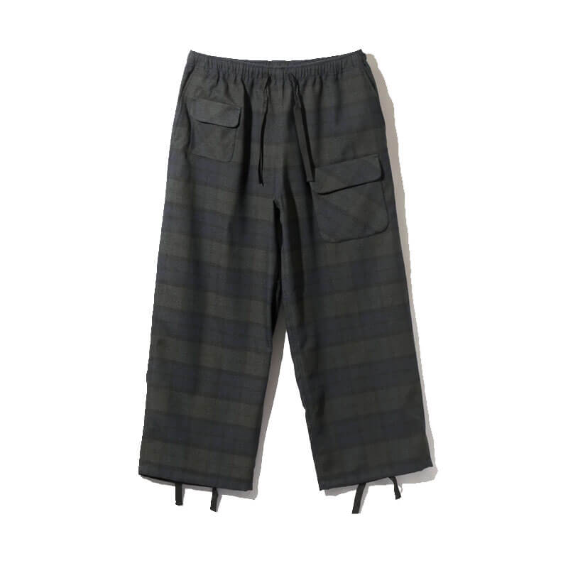 SOUTH2 WEST8 String Cuff Balloon Pant – Black Watch Plaid: This pair of balloon pants features a relaxed wide silhouette, string waist and hem, and asymmetrically placed patch and flap pockets. It is comfortable to wear without being too tight.