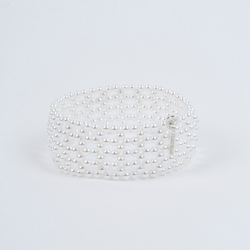 Included in the last FW23 delivery, this STAND ALONE Faux Pearl Bracelet Set – White features:
