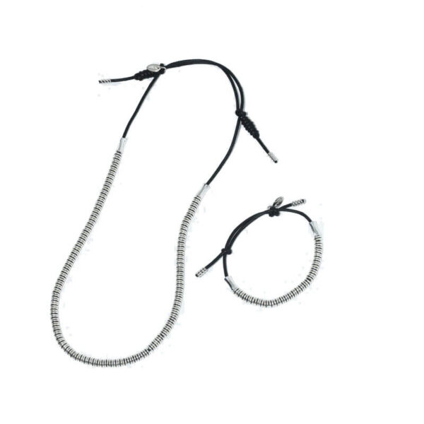 TOGA ARCHIVES Metal Bangle & Necklace Set – Silver: Add a sophisticated touch to any outfit thanks to these Fringe Bangle Set Toga Pulla. The Tokyo-based brand has garnered a devoted fanbase for its avant-garde aesthetics and attention to detail – showcased with this adjustable Bangle & Necklace set. Crafted from silver-tone metal, this TOGA ARCHIVES Metal Bangle & Necklace Set – Silver is included in the last Spring-Summer23 collection and features: