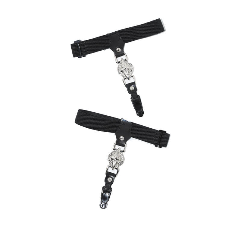 TOGA ARCHIVES Socks Gater – Black: Make a statement with this socks gater. The charms suspended on a cowhide premium leather cord has adjustable length and draw the eye and invite interpretation. Created using a nylon ribbon with adjustable length and completed with Western-style metal detail, this gorgeous piece shows the label’s love of Americana-inspired theming.