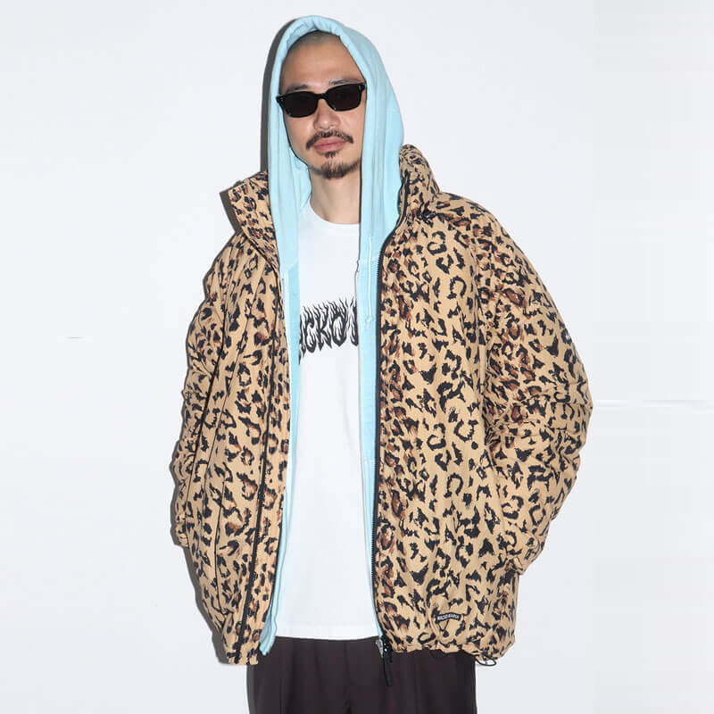 WACKO MARIA NANGA Leopard Down Jacket – Blue: Down jacket crafted by Japanese outdoor expertise Nanga.