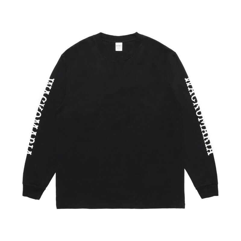 WACKO MARIA Wacko Sleeve Heavyweight LS Tee – Black: Heavy weight long sleeve tee with graphic logo embroidered on back and graphic printed on sleeves. Pre-washed garment to avoid shrink.