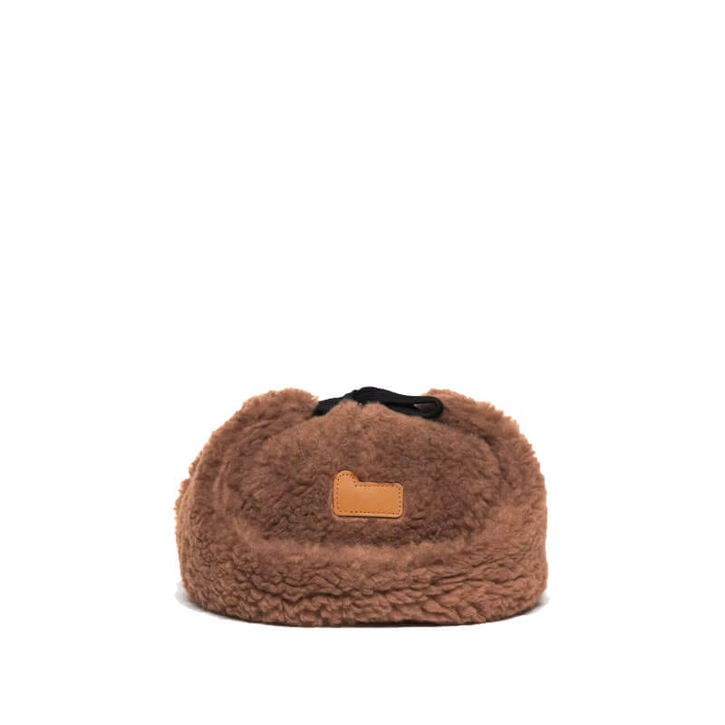 WOOLRICH JAPAN Boa Fleece Hat – Beige: Ideal for giving your winter looks a distinctive touch, this cap from the Outdoor Label Designed in Japan collection is made from a warm, recycled wool-blend fleece from the historic Lanificio Becagli mill in Italy. The integrated ear flaps can be secured using the practical straps. A functional detail that provides warmth and versatility.