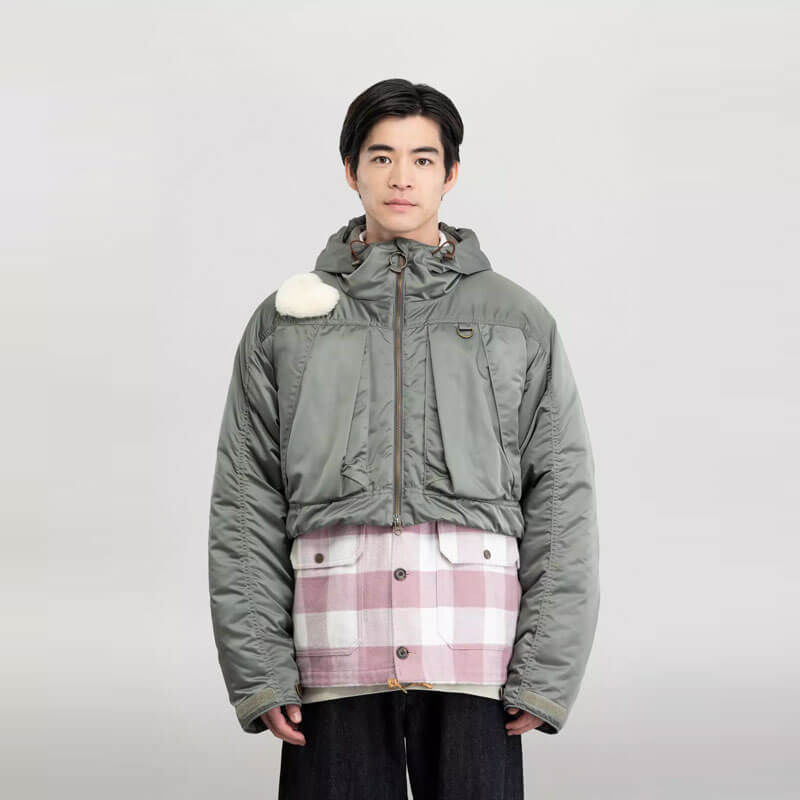 WOOLRICH JAPAN Nylon Classic Fishing Jacket – Brown: Inspired by workwear garments in Woolrich’s archive, this jacket from the Outdoor Label Designed in Japan Collection is functional, versatile and suitable for both everyday use and outdoor adventures. It’s made from water-repellent nylon-blend taffeta that gives the garment a slightly glossy effect. The design fastens with a practical zipper and logo-branded brass snap buttons. It features a removable hood and a ribbed corduroy classic collar that can be raised and secured when you need extra protection. The various pockets, including two gusseted ones on the chest and two wide rear ones, offer practicality for any occasion. It includes a functional D-ring hook on the back. Completing the design is the sheep-shaped lamb fur patch.