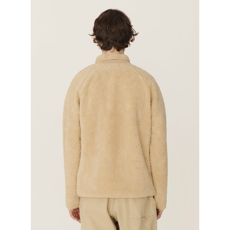 YMC Beach Jacket – Natural: Fleece jacket cut with a bound-edge shawl collar from a fully recycled Italian cotton blend. Included in YMC’s Earth collection, a timeless collection of staples, sustainably constructed using natural, organic or recycled materials. This YMC Beach Jacket – Natural features: