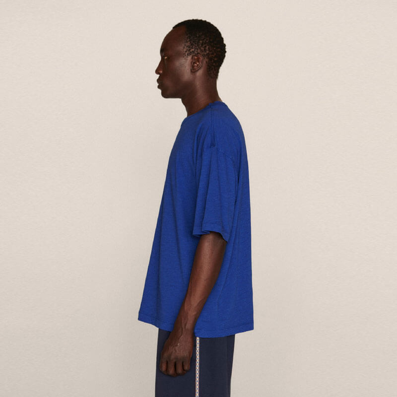 YMC Triple T-Shirt – Blue: Oversize tee in ultra soft organic cotton. Designed to be worn loose for a relaxed feel. Pigment-dyed for an authentic finish, with a rounded neck.